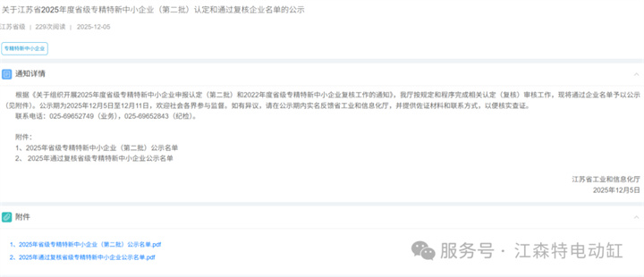 The title of "Specialized, Refined, Unique and Innovative Small and Medium-sized Enterprise" awarded by the Jiangsu Provincial Department of Industry and Information Technology in December 2025 is a high recognition of the company's development path of "specialization, refinement, uniqueness and innovation", marking that Johnson Tech's core technologies and market competitiveness in the field of automation have entered the ranks of high-quality small and medium-sized enterprises in the province.