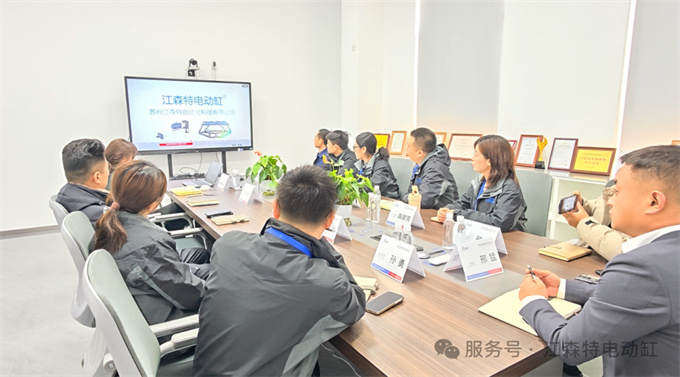 首播当日,江森特公司会议室气氛庄重而热烈。公司高层管理团队、核心技术负责人与各部门骨干齐聚一堂,早早守候在大屏幕前,共同见证这一里程碑时刻。当江森特伺服电动缸、六自由度平台的产品形象与品牌画面在央视一套正式亮相时,全场目光专注、神情振奋,掌声与期许交织,共同定格下这一属于江森特、更属于国产智造的荣耀瞬间。